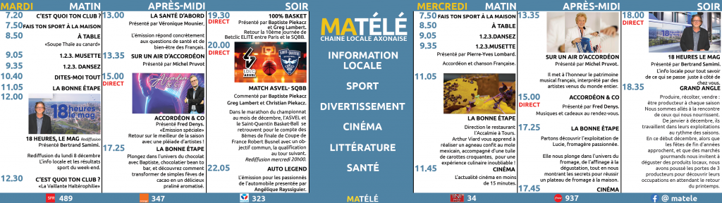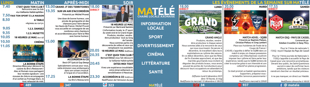 (Retrouvez l’ensemble de nos programmes TV sur l’Aisne Nouvelle)